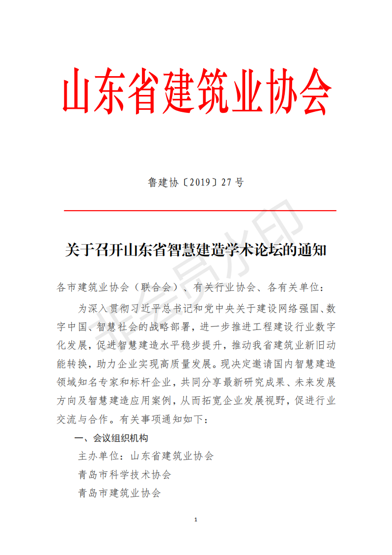 轉(zhuǎn)發(fā)山東省建筑業(yè)協(xié)會《關(guān)于召開山東省智慧建造學(xué)術(shù)論壇的通知》