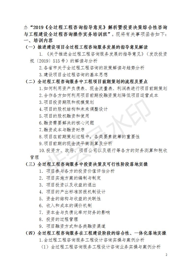 關(guān)于舉辦“2019《全過(guò)程工程咨詢指導(dǎo)意見(jiàn)》解析暨投資決策綜合性咨詢與工程建設(shè)全過(guò)程咨詢管控與操作”實(shí)務(wù)培訓(xùn)班的通知